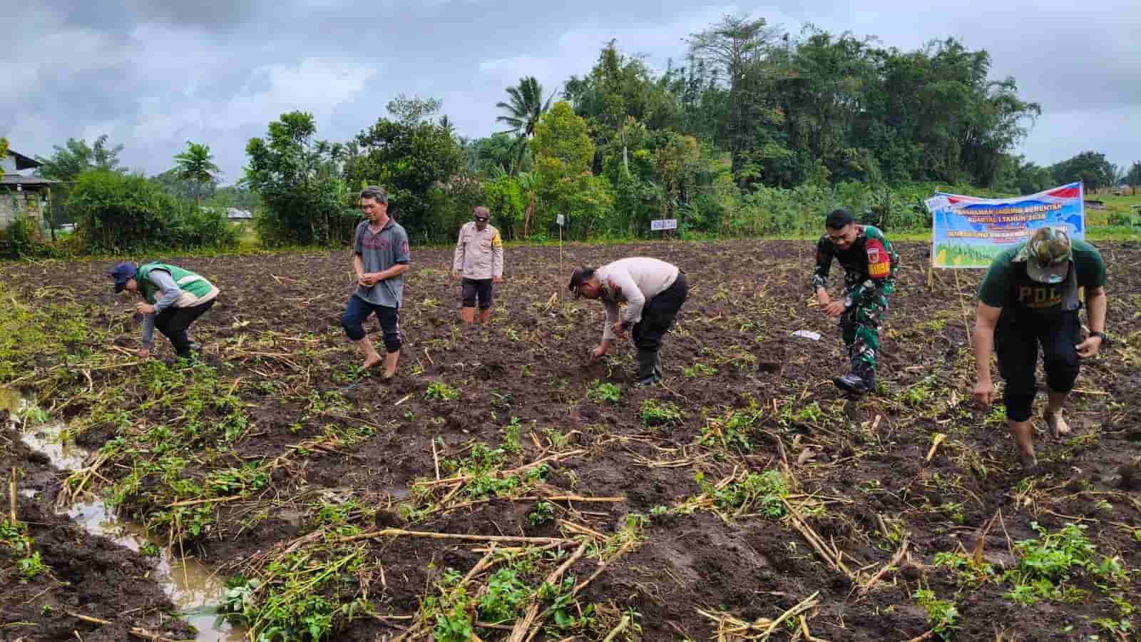 Kegiatan penanaman jagung ini melibatkan berbagai unsur pemerintah dan aparat keamanan. Mereka bekerja bersama di lahan pertanian tanpa sekat jabatan.