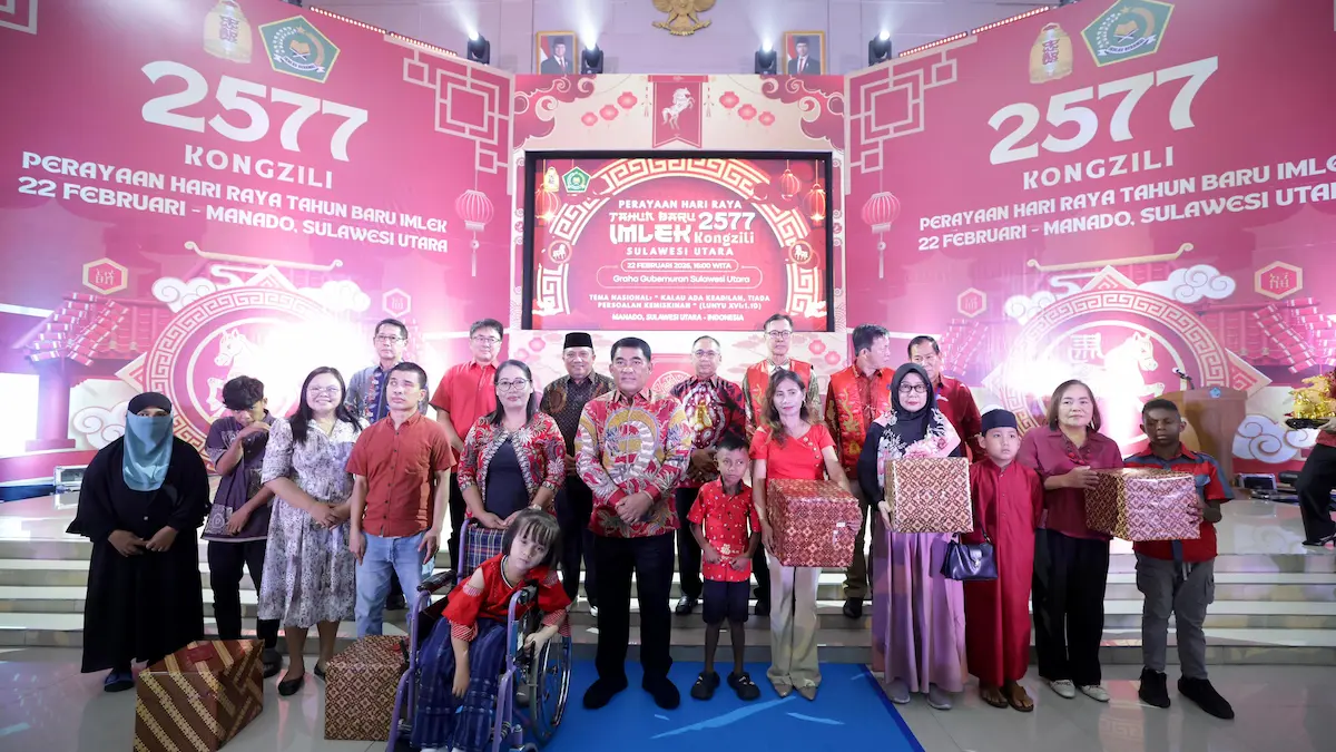 SULUTVIRAL.INFO — Gubernur Sulawesi Utara, Mayjen TNI (Purn) Yulius Selvanus, SE, menghadiri perayaan syukur Tahun Baru Imlek 2577 Kongzili tingkat Provinsi Sulawesi Utara yang digelar di Graha Gubernuran, Manado, pada Minggu, 22 Februari 2026.
