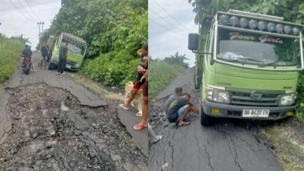 Kondisi jalan rusak di wilayah lain juga memperlihatkan persoalan infrastruktur yang belum tertangani, seperti pada jalan rusak parah yang mengancam keselamatan pengguna jalan di daerah Tomohon.