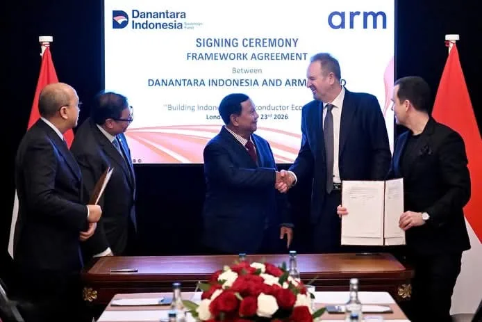 SULUTVIRAL.INFO – Pemerintah Indonesia melalui Badan Pengelola Investasi Danantara menjalin kemitraan strategis dengan Arm Limited, perusahaan teknologi global asal Inggris. Presiden Prabowo Subianto menyaksikan langsung penandatanganan perjanjian kerangka kerja tersebut di London, Inggris, Senin 23 Februari 2026, sekaligus menegaskan arah baru transformasi teknologi nasional.