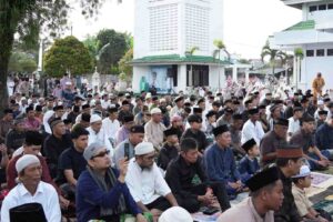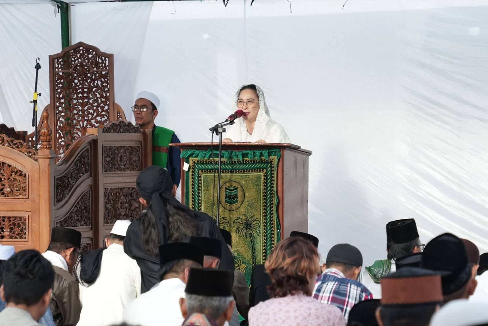 SULUTVIRAL.INFO – Wakil Bupati Minahasa, Vanda Sarundajang, menghadiri pelaksanaan Sholat Idul Fitri 1447 Hijriah.