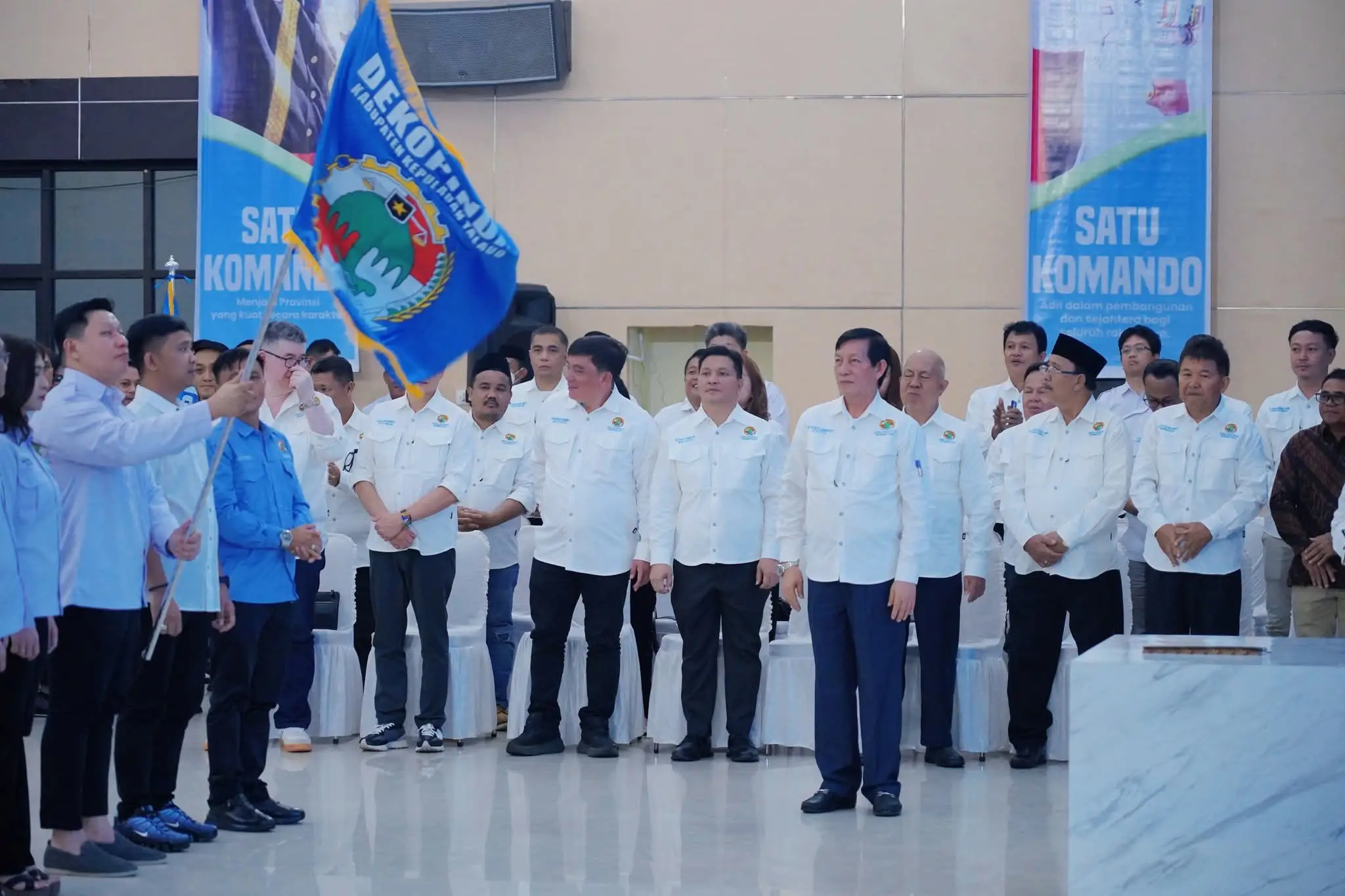 SULUTVIRAL.INFO – Bupati Bolaang Mongondow Yusra Alhabsyi, SE, M.Si., bersama Wakil Bupati Dony Lumenta menghadiri pelantikan pimpinan Dewan Koperasi Indonesia Daerah (Dekopinda) kabupaten dan kota se-Provinsi Sulawesi Utara. Kegiatan berlangsung di Gedung Graha Bumi Beringin, Manado, Jumat, 6 Maret 2026.
